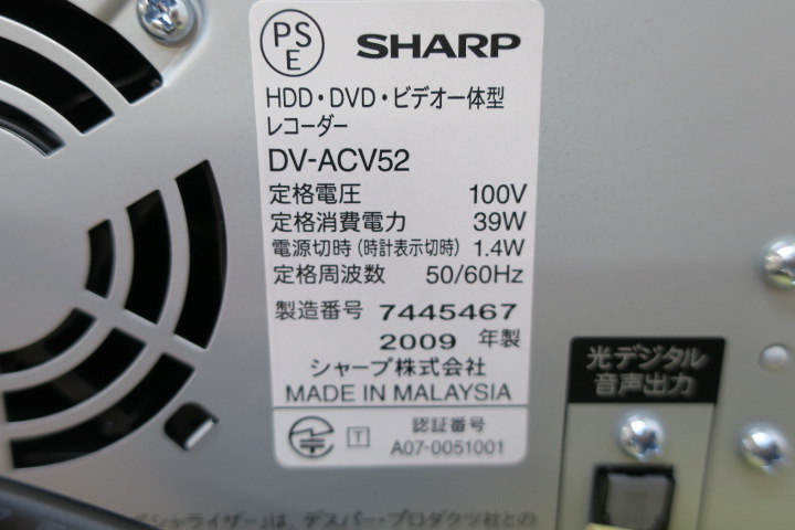 2019/08/12 前橋店 SHARP AQUOS 250GB HDD搭載ビデオ一体型DVDレコーダー DV-ACV52 2009年製 高価買取♪