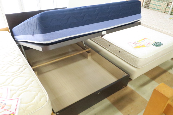 ベッドフレームは跳ね上がり式で収納力も抜群!!