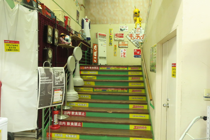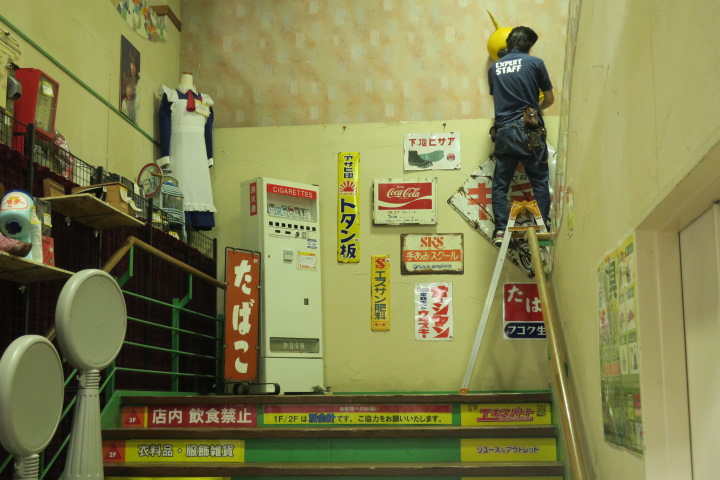 ふと、階段をみあげたらオヤジが脚立に上ってなにかはじめましたよ。