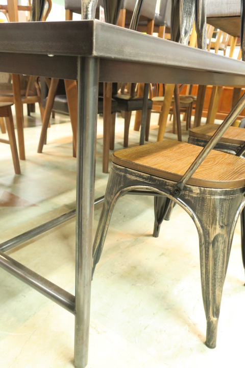 木目をそのまま残した天板に、無骨なアイアンフレームが映えるダイニングセット!