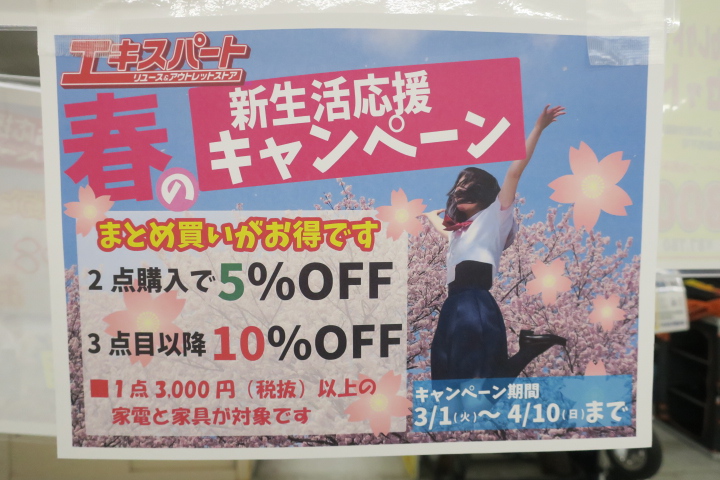 エキスパートでは本日より春の新生活キャンペーン開催中です(^^♪
