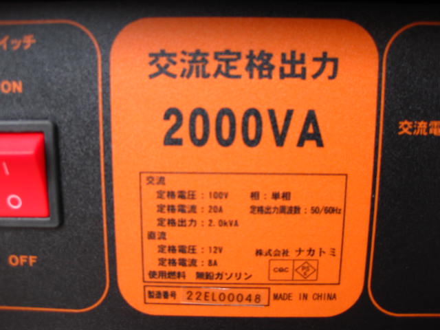 出力(AC):2 kVA 電圧:(AC)100V(DC)12V